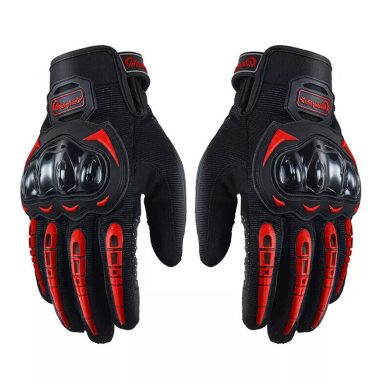 دستکش ها نیز مثل دیگر تجهیزات موتور سواری مهم هستند و برای چسبندگی دست به فرمان استفاده می شود و از عرق کردن و آسیب دیدگی در صورت بروز حادثه و دما بالا و پایین و.. جلوگیری می کند.دستکش موتور سواری انواع مختلفی دارد به طور مثال برای هوا گرم و تابستان از دستکش هایی که سبک و سوراخ دار هستند باید استفاده شود و در هوای سرد و زمستان از دستکش هایی که جنس مقاوم دارد، در دمای پایین دست ها بسیار زود سرد می شوند و دستکش باید با دست ها فیت باشد و قسمت کف دست باید جنسی مقاوم نسبت به سایدگی داشته باشد. دستکش چهارفصل RIDING TRIBE دارای قابلیت ضربه گیری در نواحی حساس دست و انگشتان و چسب تنظیم و قابلیت استفاده از تاچ موبایل میباشد.