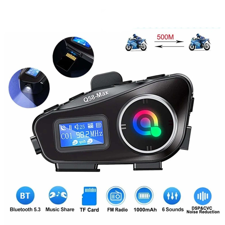 هدست بلوتوث Q58 Max یک هدست مخصوص کلاه موتور است که با بلوتوث پایدار، کیفیت صدای شفاف و فناوری حذف نویز، تجربهای عالی در مکالمه و موسیقی ارائه میدهد. این مدل دارای قابلیت اینترکام دو نفره تا ۵۰۰ متر، اشتراک گذاری موزیک ، پشتیبانی از کارت حافظه و رادیو FM، اتصال همزمان به دو گوشی و باتری قدرتمند ۱۰۰۰ میلی آمپری ۳۰۰ ساعت در حالت استندبای و ۲۵ ساعت پخش مداوم ، طراحی ضدآب آن نیز باعث میشود در هر شرایط جوی قابلاعتماد باشد.
