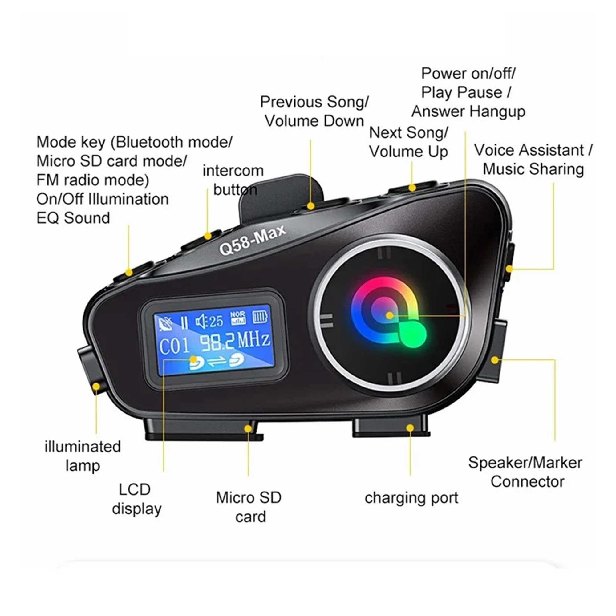 هدست بلوتوث Q58 Max یک هدست مخصوص کلاه موتور است که با بلوتوث پایدار، کیفیت صدای شفاف و فناوری حذف نویز، تجربهای عالی در مکالمه و موسیقی ارائه میدهد. این مدل دارای قابلیت اینترکام دو نفره تا ۵۰۰ متر، اشتراک گذاری موزیک ، پشتیبانی از کارت حافظه و رادیو FM، اتصال همزمان به دو گوشی و باتری قدرتمند ۱۰۰۰ میلی آمپری ۳۰۰ ساعت در حالت استندبای و ۲۵ ساعت پخش مداوم ، طراحی ضدآب آن نیز باعث میشود در هر شرایط جوی قابلاعتماد باشد.
